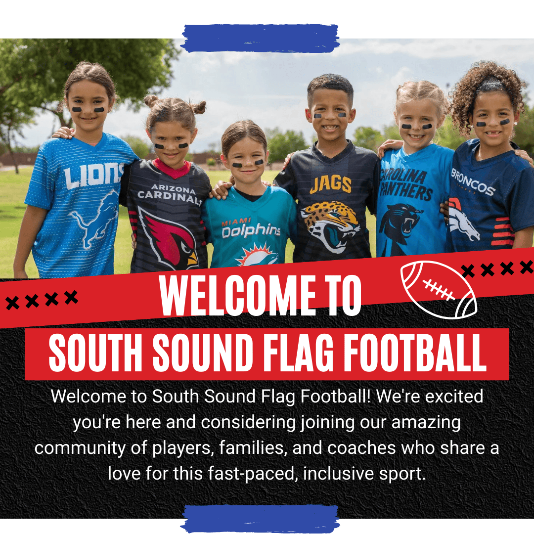 Thank you for choosing South Sound Flag Football for your child's athletic journey! We're excited to have your family as part of our league community and can't wait to watch your young athlete grow, learn, and have an amazing time on the field.